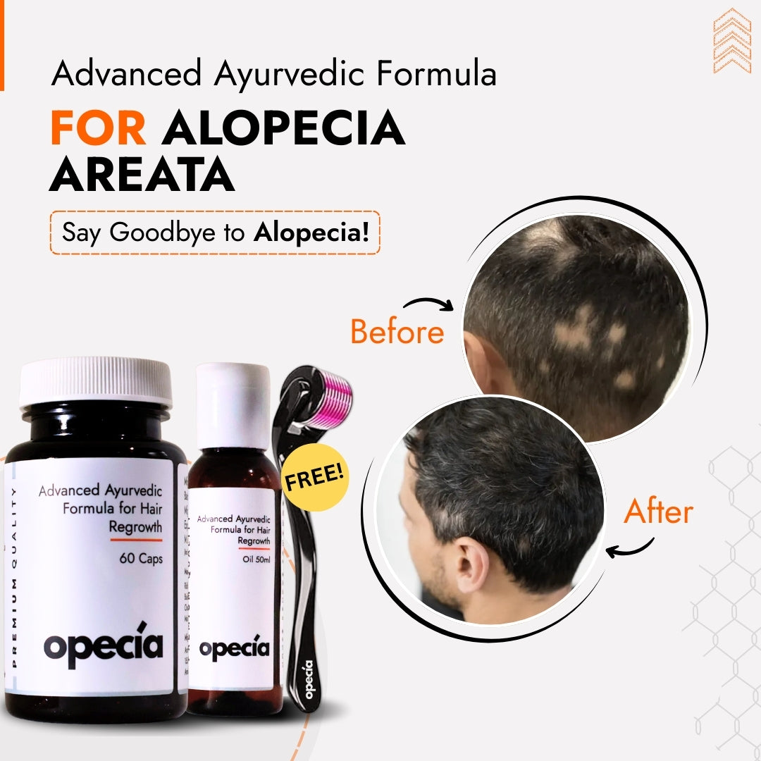 Opecia is formulated to manage alopecia areata, bald patches, hair thinning, and promote natural hair regrowth.